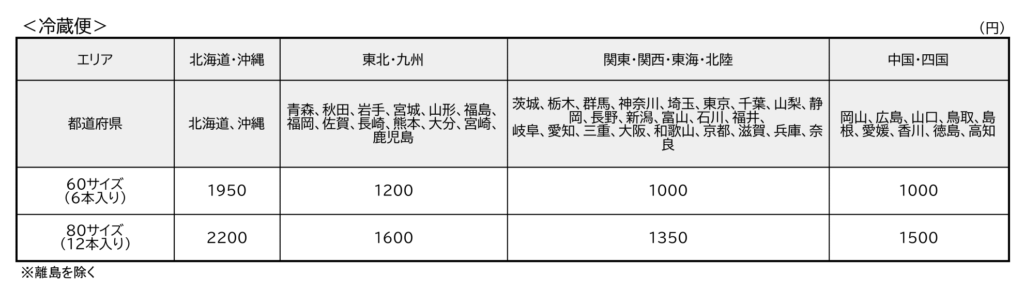 ・商品代と別に片道送料(税抜)を下表のとおり請求させていただきます。